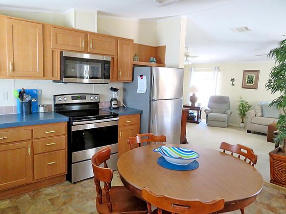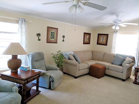 FURNISHED, AND INCLUDES THE GOLF CART. Completely turn key, everything pictured stays, including the tools and ladder! TWO Bedrooms, TWO, Baths, large living room and eat-in kitchen. 2012 ROOF. This cute home is so perfect for a seasonal home. Rear Florida room offers great privacy when the day is done. Golf cart/storage shed, including the golf cart. Come take a look!!
