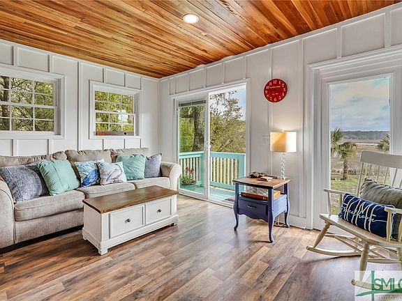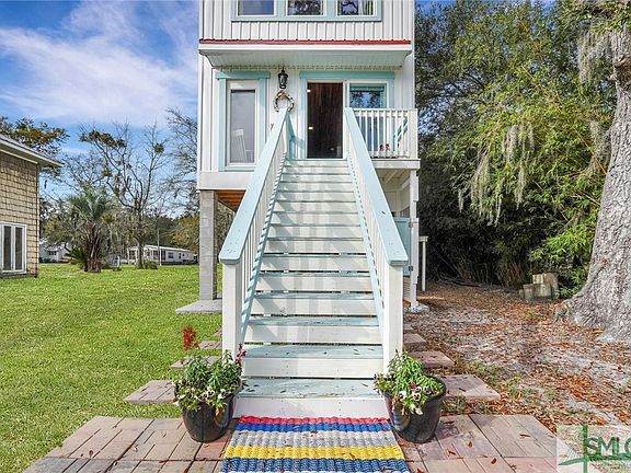 RIVERFRONT AND MARSH VIEWS FOR MILES!! Waterfront Get-Away with a Big Emphasis on Design and Function! Open Concept Plan with Panoramic Views - Great Room Flows to Eating Area to Breakfast Bar to Kitchen Complete w SS Appliances / Upgraded Exhaust / Metal Backsplash/ White Cabs.. One Bedroom on this Level with Half Bath for Convenience -Storage Options with Nook Under Stairs Currently Used as Pantry and Laundry Area w Cabs- Second Floor Suite Includes Loft/Sitting Area Leading to Compartmentalized Full Bath with 2 Separate Vanities + Tub/ Shower + 1 Additional Shower - Primary Bedroom Presents Expansive Views and Space for Desk + Seating - Interior Appointments are 100% On Point: Wood Ceiling Treatments / Neutral Paint Scheme/ Specialty Walls / Gorgeous Floors!! Bottom Level Could be Finished for Additional SQFT (uninsurable) - Outdoor Shower is Ready for After Boating / Fishing Adventures - Property Just Steps from Community Dock - Restaurants and Marina are a Short Drive Away!!
