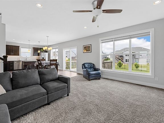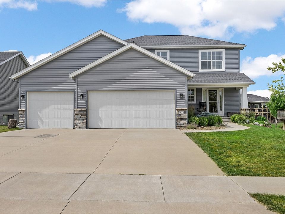 Newer two-story home in a popular neighborhood, within walking distance to Linn Mar schools. Features new carpet in the living room and on the stairs, with a seller credit available for the three upstairs bedrooms to match upon them moving out. Open concept kitchen with granite countertops, tiled backsplash, under-cabinet lighting, stainless steel appliances, and new hard surface flooring. Main level includes a custom stone-to-ceiling gas fireplace, half bath, laundry room (washer/dryer included), and a perfect den/office. Upstairs, you'll find three bedrooms and two bathrooms, with the primary suite offering a custom feature wall, large vanity with his-and-her sinks, and a walk-in closet. The lower level boasts a spacious rec room, a fourth bedroom with a large daylight window, and another full bath. Enjoy evenings on the deck overlooking the fully fenced backyard with a custom iron rod fence. Sellers will offer credit to buyer to replace dirt patch at bottom of deck stairs or lay seed prior to closing. A must-see property!