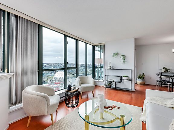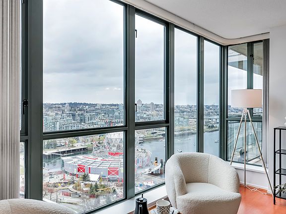 Experience luxury living in this gorgeous 2-bed, 2-full bath with brand new fully renovated kitchen and primary bathroom unit on the 24th floor of Viceroy, boasting 1121sqft of living space. Revel in breathtaking city, mountain, and inlet views from this prime location, just steps away from Downtown, the sea wall, Science World & more. The extra-large primary bedroom features a walk-in closet and full ensuite bathroom. Recent upgrades to building include new lobby, hallways, carpets & doors. Don't miss out on this must see property!