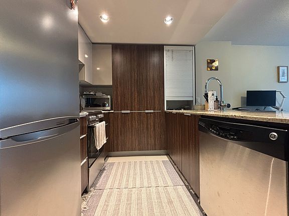 Address: 1205 - 1088 RICHARDS ST, VANCOUVER, BC, V6B 0J8 Welcome to Richards Living, one of Yaletown's most sought-after buildings. This bright and functional unit offers protected, unobstructed views of historic Yaletown and water, the layout is ideal for both comfortable living and working from home. Just steps to Yaletown-Roundhouse SkyTrain, shops, restaurants, and entertainment. Well-managed building with amenities. Size: 565 sqft Building Type: Apartment Strata Manage: Yes Furnished: Yes Bedrooms: 1 Bathrooms: 1 Den: 1 Max Occupancy: 2 Balcony: 1 Floor: 12th Bike Storage: 1 Parking: 1 Utilities included: Water + Hot Water + Internet *Tenant is responsible to set up the utilities that are not included in the rent such as Gas, Heat, Electricity, etc. Pet: No Smoking: No Sublease & Subletting: No Overview: - In-suite laundry - Fridge - Dishwasher - Stove - Microwave Oven - Windows Covering - Bathtub - A/C Amenities: - Gym - Elevator - Visitor Parking - Bicycle Storage Nearby Transit: - BUS - 006, 023, 017, N15, 004, 007, 010, 014, 016 - SKYTRAIN - Yaletown-Roundhouse Station (6mins walk) Nearby Groceries/Shops/Restaurants/Schools: - Earls Kitchen + Bar - Blue Water Cafe - The Keg Steakhouse + Bar - Yaletown - Yaletown Park - Emery Barnes Park - Nero Belgian Waffle Bar and many more... Term: 95 days Minimum Available: October 15, 2025 Listed by: Reside Management **The tenant needs to get tenant insurance The tenant is responsible to pay for Strata move-in and move-out fee. Disclaimer: While every effort has been made to provide current and accurate information presented on the listing, the information is not guaranteed. The rental status, rental rate, availability date and property features are all subject to change at any time. Reside Management is not responsible for any inaccuracies on this.