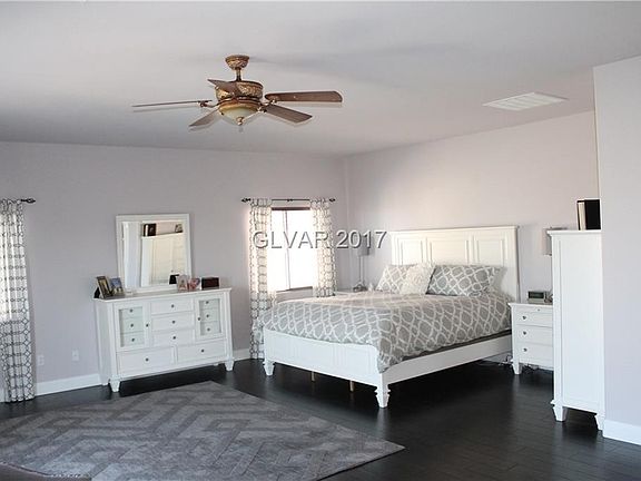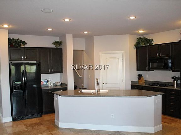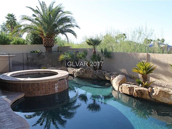 Beautiful highly upgraded home w/ amazing Strip Views off master balcony. Beautifully landscaped yard w/ in-ground pool/spa, built-in BBQ w/fridge & covered patio. Like new carpet, paint, custom baseboards, travertine & dark wood laminate floors. Open kitchen w/ Corian counters and plantation shutters. Dual Masters w/ one downstairs, huge master suite upstairs, and large secondary bedrooms. His/hers closets in upstairs master. Tons of storage.