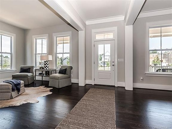 The Seabrook plan features a covered front porch nearly spanning the width of the home and overlooking the gas lantern park. Rear has covered porch, a detached 24' x 20' 2-car garage, and fenced yard. Interior has an layout and master on the second level. Attention to detail shown throughout, with site-finished hardwoods throughout the first floor (excludes laundry), GE stainless steel appliances with gas range, built-ins surrounding fireplace, and more.