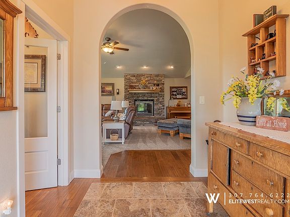 Truly incredible! This property has it all; 3564+/- sq/ft on one level, 1024 sq/ft garage & 2000 sq/ft fully finished shop on 8.4 irrigated acres. Adj 92 acres w/ live water can be sold as well! Vaulted ceilings, open floor plan & custom hickory cabinets throughout. This turnkey country horse property is immaculately constructed & cared for. The landscaping, gardens & setting are second to none.