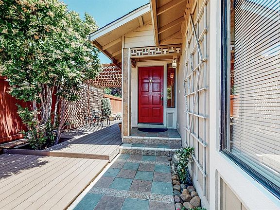Wonderful single story home with a sanctuary garden, which features a shady deck and a separate patio for your relaxation and enjoyment. The house features A/C to keep you cool, vaulted ceilings, laminate flooring, and a large walk-in closet in master bedroom. The garage has a great work bench, storage, and lighting. The low-water-use garden has a magical walkway, a new trellis and arbor by the long-lasting synthetic deck, and was recently redone with commercial-grade weed cloth and new slate on the back patio. Also, an apple and plumb tree! This home is located in the Sierra Meadows neighborhood, which offers a park with play structures, a basketball courts, and access to walking trails, in addition to a RV and boat parking lot