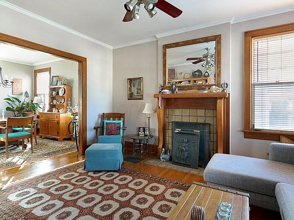 One block from Schiller Park. Charming brick condo w/low monthly fee. End unit w/lots of light, Southern exposure on Redbud Alley. Covered front porch. Original woodwork & gleaming hardwood floors. Vintage chandelier in entry. Large living room w/fireplace. Dining room w/built-in hutch. Kitchen w/new & vintage cabinets for a creative flair, granite counter tops. Owner's bedroom is generous w/nice closet space. 2nd bedroom or office space overlooks enclosed patio. Laundry in basement w/high ceilings, large windows allowing natural light to fill the space, shelving for storage-great area for additional living space. Covered back porch steps down to enclosed patio. Gate accesses Redbud Alley. See A2A remarks.