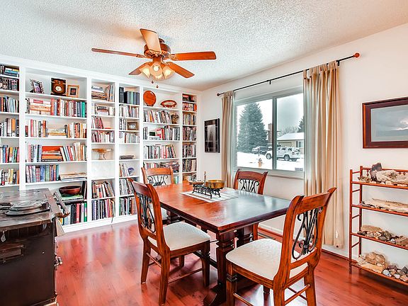 Clean, well maintained, Pikes Peak views, & a great flow-Welcome Home! Enter into the living room with beautiful laminate wood floors, custom built-in bookcases, doubles well as a dining room. Kitchen/dining combo features an island, built-in desk, & leads to the two-car garage. Upper level has 3 bedrooms with a great-looking full bathroom! Lower level has a nice family room with an electric-insert fireplace, bedroom, half bath, & laundry. Huge backyard has a large concrete patio, garden area, & mature trees! The home has newer siding, windows, doors, & a roof installed in 2009. Central AC for those hot summer days!