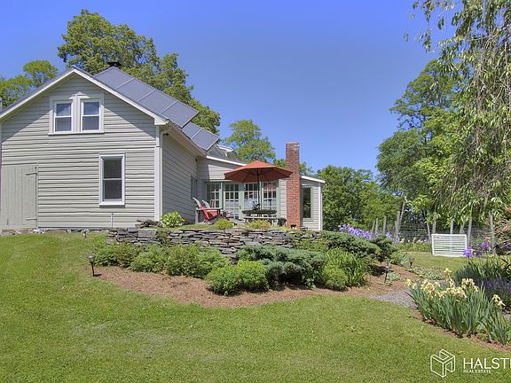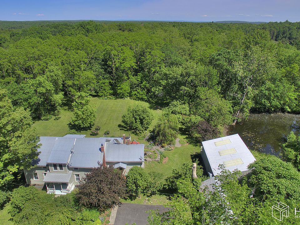 This historical 1800's farmhouse on 5.5 acres in its storybook setting truly feels as if you have stepped back in time. Located on a beautiful private country lane, which is ideal for long walks and bike rides. Towering trees and mature perennial gardens wind thru the property from the house to the large airy (heated and air-conditioned) 800 sqf art studio overlooking a nicely proportioned pond, which reflects the trees and sky. The front porch is the perfect spot to laze away summer afternoons bathed the magical surroundings and ethereal afternoon light. The original front door opens to 3200sf of open rooms with original pressed tin ceilings and walls paired with antique wide-board floors. Countless windows bathing the home in light, tin ceilings, two parlors, eat-in-kitchen, summer kitchen, wood burning stove, laundry, four season 'sun-room' four bedrooms, two baths. Bring your creative spirit to this perfect escape retreat.