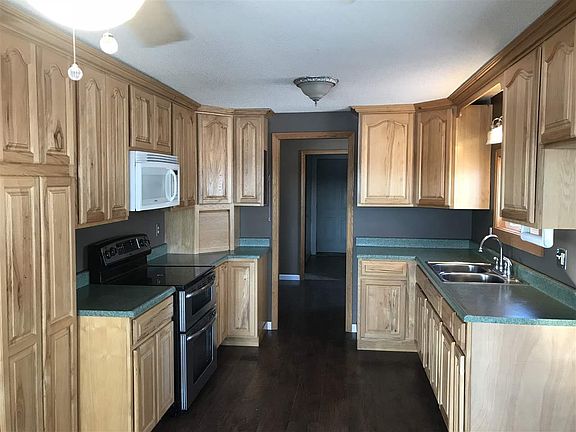 Price Reduced! Ranch style 3 BR 2.5 bath home with walk out basement (approx 2340 sq ft). Located west on 18th St, this home sits on 1.28 acres and has many updates: dark wood laminate flooring in main floor LR, kitchen and entry; newer GFA furnace and central air and updated 2 service electrical panel (200 and 100 amp). Main floor laundry w/gas or electric dryer hook up. Attached 2 car garage and above ground swimming pool. Newer carpet in lower level family room (24x26) and laminate flooring. City water and city sewer. Large covered deck has great sunsets views!