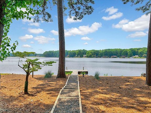 STUNNING Lakefront Ranch in the gated golf community of Carolina Trace! Wall of windows welcomes you to breathtaking views from almost every location in the home. Beautifully renovated kitchen boasts granite countertops, built-in oven, gas range and tons of storage. Hardwood floors, gas fireplace, and spacious primary suite with updated bathroom. Lake life has never looked better with lush landscaping, private dock, and massive outdoor deck. Low maintenance living including golf cart garage, irrigation, and private South Landing pool! Easy commute to RTP, RDU, and DT Raleigh via US 1.
