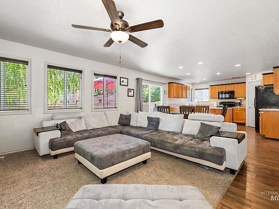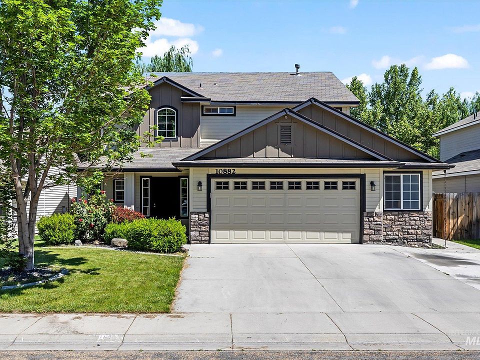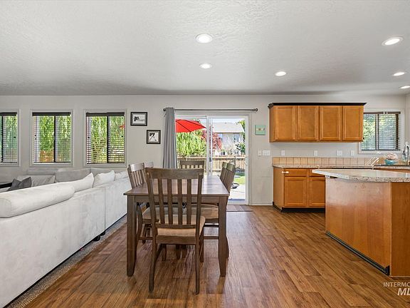 Beautiful home with open floor plan in the desirable Monarch subdivision in NE Nampa! This property boasts an inviting spacious family room with LVP flooring, with the dining area, and kitchen area altogether perfect for families and entertaining. Custom kitchen with newer countertops and kitchen island. The upstairs is highlighted by the oversized master bedroom designed for comfort, with master bath and dual walk-in closets. The upstairs also includes two other large bedrooms and a second bathroom. The home also has a Lorex CCTV 4K 4-video camera system. The fully fenced yard has a grand back patio with lovely landscaping with curbing and stamped stones, lots of space to play with two full grown willow trees providing shade, and a 10x12 storage shed with interior shelving. Lots of storage between the shed, two attic spaces, and the 2.5-car attached garage with extra width and depth and overhead garage storage. Great location and close proximity to shopping, desired schools, and freeway.