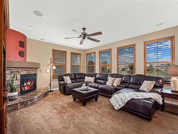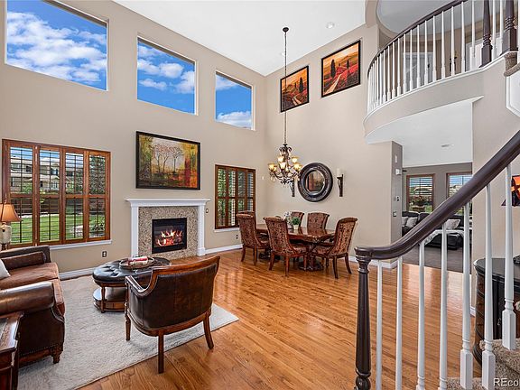 Look no further, this is the one! Beautiful, open concept, 2 story home in The Hearth! Gorgeous landscape! HARD TO FIND-ALMOST 1/4 ACRE LOT! Backs to open space! When you walk in the door you are greeted by a 2 story living and family room with dramatic curved staircase! You will also enjoy the large family room right off of the gourmet kitchen which has a generous sized island, huge eating area, butler's pantry, built in desk area, and expansive deck that overlooks the open space behind! Wood plantation shutters throughout main floor! Perfect for guests or multi-generational living there is a main floor bedroom and full bath! Upstairs boasts an abundant master suite with fireplace, his and hers walk in closets, private deck overlooking the open space! Also upstairs are 2 secondary bedrooms and a full bath and a spacious office. This home is only a block from Southridge Rec Center with indoor/outdoor pools and tennis courts, Paintbrush Park, Trails! Close to retail, dining, shopping, etc. Full unfinished basement with an additional 1493 sq. ft. ready to finish! Stamped concrete patio at walkout basement level ready for you to enjoy! Great yard for entertaining!