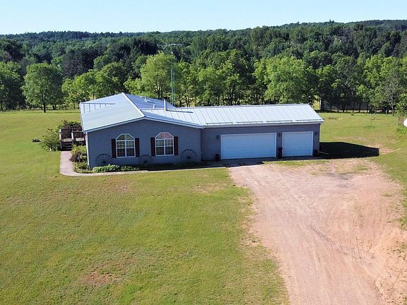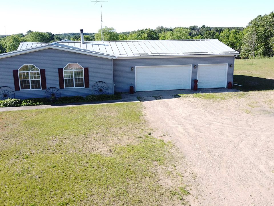 Very well-maintained manufactured ranch home with two living areas, 2 full baths, large kitchen and 4 bedroom. Wood burning stove in family room. Large 3 car garage with heater, metal storage building and canopy storage area. Large 10+ acres very private lot. Full poured concrete and insulated lower level just waiting to be finished for additional living area. Metal roof installed recently so you don't have about how long the shingles will last. Nice deck area out the kitchen/dining area's siding door. Again, this home is in excellent condition as it has been very well maintained. Common sand driveway.