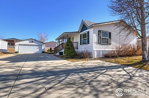 Firestone, CO housing under $200,000?! Grandma's moving and this well-maintained manufactured home in Sun Communities can be yours. THE nicest property in the community. 3bd/3ba in 2,100 sqft. 2 car detached garage. 5-car concrete off-street parking. Open floor plan has 2 master suites with walk-in closets. Big kitchen with ample counter space. Plenty of room for large gatherings. 5-piece Master Bathroom with oversized bathrooms. Lots of storage along with an enclosed pantry. Large laundry room. Southside deck offers plenty of warmth on sunny days for outdoor activities. Nicely finished home with tile through-out kitchen and bathrooms. Cherry laminate floors. New carpet in bedrooms and new paint in home. Wheelchair lift included. Low maintenance yard allows for more time at the Community Center playing in the pool and playground. Easy access to Denver, Boulder and Ft. Collins. Only 30 minutes to Coors Field in Denver. Home is ready for a quick close. Financing Available.