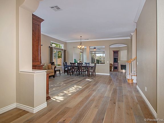 Fall in love with this sunny backyard with a southwest exposure complete with stunning canyon views. From the moment you drive up to this inviting home you are drawn in by the beautifully landscaped grounds. The flooring throughout the house is brand new with beautiful hardwood downstairs and upstairs has neutral toned cushy carpet. The light and bright open floor plan is complemented by tasteful wood blinds, custom paint and granite kitchen counters. There is a bedroom downstairs with a bathroom that features a walk-in shower. The master bedroom suite is the ideal retreat with its vaulted ceilings, lots of natural light, and the beautiful view overlooking the tranquil canyon. The spacious master bath has a walk-in shower, a separate bath, and two closets. This home boasts newer air conditioning units, water heater, dishwasher, washer, dryer, stove and double ovens (all less than 3 years old). Other desirable features include crown molding throughout, surround sound in the family room, and extensive built-ins in the garage including workbench and drawers. Across the street is a neighborhood park and this charming home is located near the cul-de-sac. Located within the boundaries of the highly rated Sage Canyon Elementary School, Carmel Valley Middle School and Torrey Pines/CCA High Schools, this home has it all!