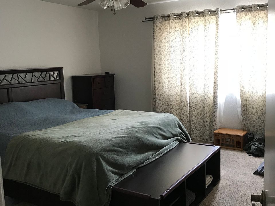 Large 2500sq ft home available for rent/makememove. 4 large bedrooms upstairs with two master baths. Guest half bath downstairs. Large Master bedroom with huge walk in closet and extra room for storage (not included in square footage). Lots and lots of storage. Each closet has custom built ins. 2 living rooms; one large with space for formal dining and one with gas fireplace. Newly remodeled kitchen with custom maple cabinets, backsplash and bankette. Large backyard with turf and side yard perfect for boat/RV/ATV. Large recently remodeled front yard with turf and xeroscape succulents. 2.5 car garage with built in shelving and custom work benches. Walking trail (Santee river walk) entrance down the street. This trail leads to playground and young kids baseball fields. The house backs up to Hillcreek school and is in a very family friendly neighborhood. Pets okay. Washer/Dryer in garage. Whole House fan to keep you cool in summer. Dual Pane Windows and extra insulation keeps the house temperature controlled.