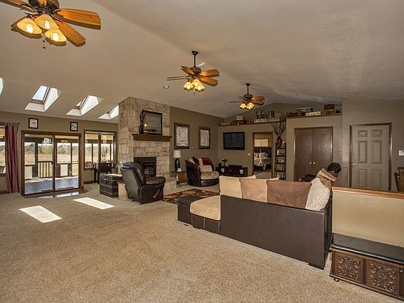 This is COUNTRY LIVING at itâs best! Take a look at this beautiful home on 41 acres, great for hunting or fishing! Just outside of Augusta, only 20 minutes east of Wichita! This home will not disappoint. Enjoy the beautiful open concept with a gorgeous updated kitchen with knotty alder wood cabinets, granite, a large eating bar, and hardwood floors. A large dining area is just off the kitchen and open to the LARGE living room with a beautiful stone fireplace! Imagine entertaining in this home! There is plenty of room for a huge crowd! Youâll love the enormous master bedroom with a walk-in closet and a wonderful updated master bathroom with large tile shower. Another bedroom with en-suite bath , a separate laundry room and a ½ bath also make up this main floor. Youâll love the spacious covered and screened-in deck just off the living room & kitchen. Gorgeous views all around of the country land! But donât forget the basement. If you want space, here it is!! Youâll love the enormous wetbar with a custom concrete countertop! Itâs a fantastic family room with gorgeous built-ins! Plus there is so much more space for games or more seating! Donât miss the concrete safe room / storage room! The basement also has 3 more bedrooms and a full bathroom. Itâs a fantastic area for the kids or teenagers! Outside this beautiful home youâll see the gravel circle driveway surround the front porch. Enjoy the two-car attached garage PLUS another detached 2-car oversized garage adjacent to home! There is also a 40 x 60 metal building on the property for storage or a workshop! It has electricity! Plenty of land to hunt deer or turkeys or ride 4-wheelers! Or head down to the river to fish! Be sure to see the aerial photos to see the expansive acreage. This kind of property doesnât come along very often so donât miss out!