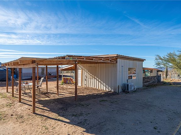 Welcome to 10887 S Duncan Rd in the secluded town of Yucca AZ. This unique property is a 40-acre former cattle ranch complete with corral and silo. The property is on city power and has two, 50-amp R/V hookups. The multi-purpose room (The Hub) has a bedroom and kitchen with a fridge and washing machine. Next to The Hub, is a one-of-a-kind outdoor soaker tub and shower. The ponds below the living area will gather water part of the year depending on rainwater. There is a 100-amp service to The Hub. Outbuildings have water and power. The 40-foot toy hauler is included in the sale and is currently connected to power and septic. Water service is provided by a solar powered 5000- gallon water tank. The older manufactured home has been freshened up on the exterior but the interior needs full rehab. It is currently being used as construction storage. 2.5 acres are fully fenced (snake fencing as well) with two access gates. Additional features include two sheds and multiple covered areas. Continuing construction projects are in the process but there is plenty of room for your new vision. Come see this amazing property today!