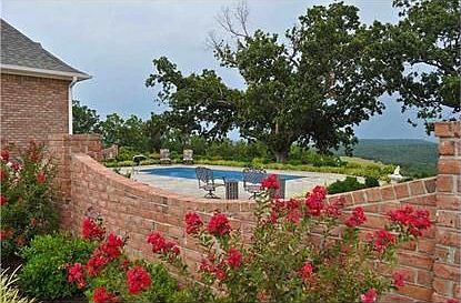 ESTATE HOME WITH INCREDIBLE VIEW! Only 10 minutes from Fort Smith. Brick/wrought iron fence, circle drive, and much more. Pool w/ tropical landscaping, 3 level detached garage w/finished basement/safe room. Pool house w/outdoor kitchen and full bath.