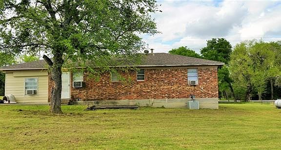 Three bedrooms with second living area or 4th bedroom. Storage building, fire pit. Some new carpeting. Few trees.