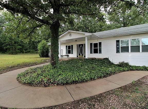 PRIVATE, PEACEFUL SETTING, 27.47 ACRES, SPACIOUS RANCH-STYLE HOME! Lovely MEADOW VIEWS out your front door, home is tucked into the serenity of tall trees: 20 years young (updated) ONE LEVEL, TOTAL ELECTRIC, 2 FULL BATHS, WOOD BURNING STOVE/FLUE, appliances including washer/dryer, central heat & air, OPEN FLOOR PLAN & more! Family room can be converted into 3rd bedroom but currently sports a pool table! Covered front porch, OVER-SIZED 2 CAR GARAGE, patio, concrete sidewalks, MULTI-DOG KENNEL on concrete & raised garden beds. Whether your interests are HUNTING, RECREATION, or great homestead, no restrictions private well & paved county roads, this property is 5 minutes from nearest grocery store & gas, about 15 minutes from Hwy 67, & about 1 hour from St. Louis County.
