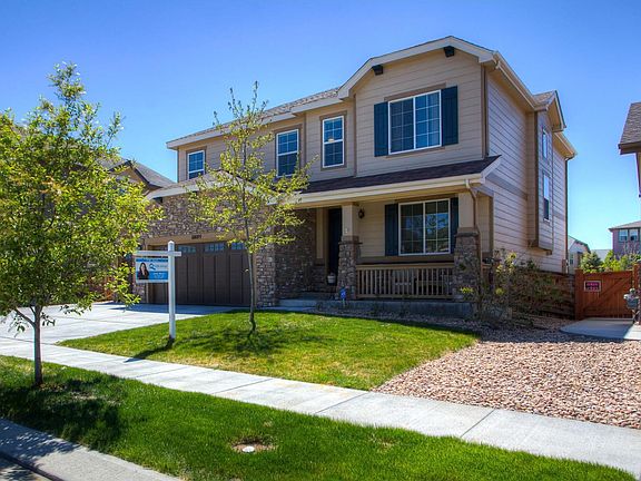 The amazing mountain views of Longs Peak alone will leave you breathless. Privacy will be yours any time you want it in this top notch neighborhood also overlooking Buffalo Run Golf Course and within walking distance of the new Reunion Elementary School. All 4 bedrooms are located on the upper level, and a lovely loft serves as a second family room. The impressive master suite will spoil you rotten with its granite soaking tub and luxury accents. Elegant flooring and window treatments extend throughout the main level, in addition to upgraded & modern light fixtures, gas fireplace, and pre-wire for surround sound. The exquisite chef's kitchen has granite counter tops, java cabinets, large pantry, fully extended center island, stainless steel appliances including gas cook top and dual ovens. Boasting a 3-car garage with perfect lot placement, also relish in recreation and relaxation from your stamped concrete fully extended patio and meticulously maintained backyard.