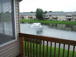Views of pond and fountains from this spacious affordable Amber Ridge condo. Kitchen offers real wood flooring and oak cabinets. Large living area attached to 3 season porch w/ deck is freshly painted and carpeted. LL offers rec room w/ fireplace and 2nd bedrm. Ample storage throughout. Condo has many specialty items you'll come to appreciate. Easy to show