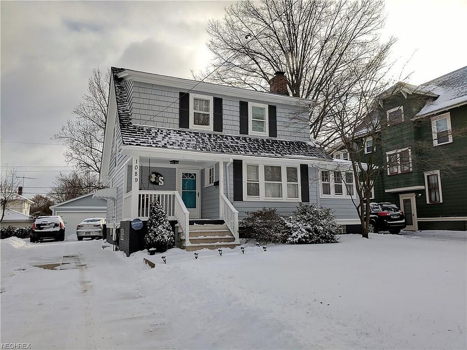 Updates Galore! A beautiful, well-maintained home in North Hill, on a tree-lined street just minutes from Cuyahoga Falls and downtown Akron. Exterior home and garage painted in 2017, new roof on the house (tear off) 2017, AC (2015), completely remodeled kitchen with new appliances (2012), completely remodeled (and extended) bathroom (2016), first floor laundry room, and carpet throughout (2016) are just a few of the updates. Enjoy large bedrooms with great closet space. Wood burning fireplace in the living room, which leads into a lovely window-lined office. Plenty of storage in the basement. Out back you will find a fenced in yard with a covered porch and patio. 2 car garage with a very long driveway, so no need to worry about parking. All that is left to do is move in!