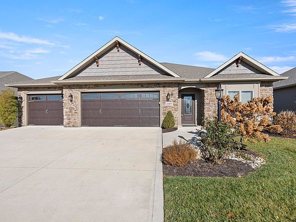 Beautiful custom-built villa now available featuring an amazing waterfront view. This wonderful almost 1900 sq ft open concept design was built with splendid taste and exquisite upgrades. Your new home welcomes you with dazzling stained glass lighting that enhances the elegance to your custom kitchen. Complete with custom size quartz island and quartz counter tops, upscale tile backsplash, soft close drawers, crown molding, sizable panty, touch sensor kitchen faucet and all stainless-steel kitchen appliances stay for your added convenience. The spacious living room has some excellent built-ins for your displays, a cozy fireplace, trey ceiling with a beautiful mosaic chandelier and the stunning view of the fountain right in your back yard perfect for those days of entertaining or just relaxing. Off the open and airy living room and kitchen you have an additional hearth space that features the same water view and fountain that brings in so much natural light. There is also access to the generous composite deck for you to enjoy the peace of the outdoors and the scenery. There was an in-ground irrigation system installed and the landscaping has been well maintained. This home offers 3 lovely bedrooms and 2 full bathrooms. The primary bedroom has a custom ensuite bathroom complete with full ceramic shower and dual sink granite counter tops and a walk-in closet. This home also offers 3 car garage with a pull-down attic with ample room for storage and the home comes with a generator. Home is being sold as is. Come see this turnkey home today!