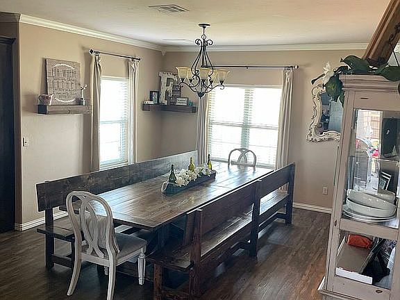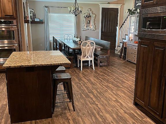 Our home is just over 2,600 square feet with an oversized two car attached garage and was built in 2014. We have four true bedrooms and two and a half bathrooms. There are two additional flex rooms that we use as bedrooms – one on the first floor and one on the second floor. The master bedroom is on the first floor and is 18x13 with a large walk-in closet and bathroom. There are two separate vanities, a large soaker tub and walk-in shower. The kitchen, living room and dining room are open concept. The kitchen boasts an electric double wall oven, gas range with two ovens and a double island with storage and seating. All kitchen appliances are stainless steel and will stay with the house. The living room has a built-in gas insert fireplace and is 19x20. French doors open to the back porch with the immediate back yard being enclosed by a wooden privacy fence. Coming in from the garage is a half bathroom and the laundry room. Upstairs there are two large bedrooms, a full bathroom, one smaller bedroom and a flex space with closet. The garage is 24x24 and has ample storage above. Flooring is luxury vinyl plank on the first floor, with carpet on the second floor and tile in the bathrooms. There is granite on the surfaces throughout. The house sits on 3.30 acres inside the Davis city limits, just blocks away from the school. It has city water and an independent aerobic system.