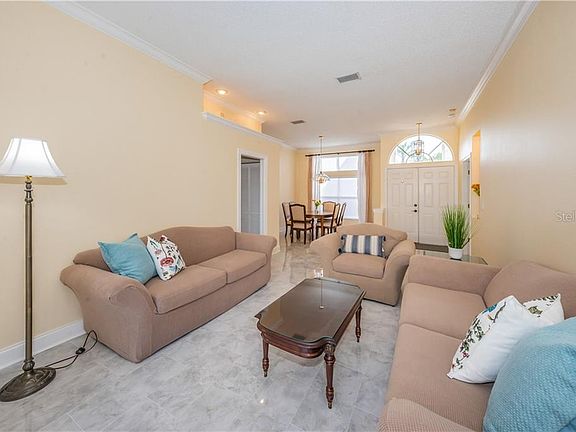 Welcome home to this gorgeous, immaculate, updated 3 bedroom, 2 bath, 2 car garage home located in the highly sought after community of Westwinds. This home is truly a pleasure to show with numerous features that will please your fussiest buyers. The living room and dining area is spacious and open with its high ceilings and crown molding that adds to the modern feeling of this Florida style home. The kitchen is light and bright with its crisp white soft close cabinetry, beautiful quartz counters, new stainless steel appliances, new floors and is open to the family room with ceilings peaking up to 16feet, wood burning fireplace and sliders out to the tiled lanai. The master suite with its high ceilings and sliders out to the lanai is also spacious and leads into the master bath with its garden tub, large walk in shower, new vanity with double sinks, granite, new fixtures and private water closet. This split bedroom system offers privacy for all. The other two bedrooms share a large second bathroom which has also been updated. The lanai is very inviting with tile floor, oversized screen enclosure and room for a pool! Lots of room to play with. The backyard is beautiful with lush green landscape and is totally fenced in. There is natural gar in the community which heats the water heater and dryer. If this was not enough more amenities include freshly painted interior, NEW ROOF, NEWER AC, reclaimed water to save money on keeping that lawn lush, NEW appliances, NEW porcelain floors through out, security wired for fire and theft, microwave vented out, indoor laundry room with washer and dryer, and more. Basic cable included. NO FLOOD INSURANCE REQUIRED. Tarpon Springs is a wonderful west coast small town. Life revolves around the Gulf, from fishing, sponging, boating to little islands, to sunning, you can experience all the recreation that the Gulf Coast has to offer. The Sponge Docks, Greek culture and downtown offer amazing shopping and restaurants. Convenient to all of the Tampa Bay Area entertainment, transit, education, and medical.Close to two local beaches, schools, Pinellas Trail and more. Start living the dream, today!