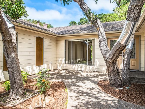 On a quiet lane beneath the majesty of our local oaks is a modest 1964 U-shape home. Hearkening back to the era of exposed concrete entries and floor-to-ceiling windows, here lies an opportunity for your imagination to unfold. Entering through the front gate into a small, private courtyard, you are welcomed by the oaks. Enjoy the two-sided fireplace from the living room or dining room. This home has been in the same family for decades and awaits its next chapter.