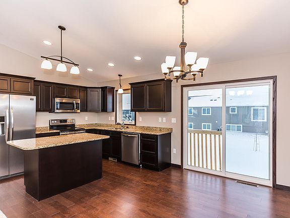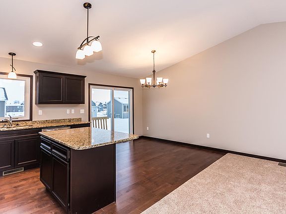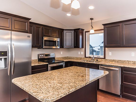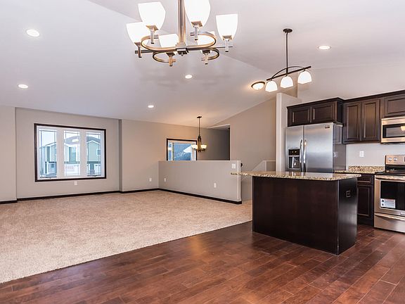 LOW SPECIALS. Developer paid down specials & only $4,498 remaining. Three stall garage, prime location for this brand new construction. Featuring 4 bed/3 bath, upgraded kitchen cabinets w/crown molding, SS appliances, island, granite counter-tops, hardwood flooring in kitchen/dining, vaulted ceiling in living area & entry, recessed lighting, finished garage ready for heat. Yard leveled & seeded.