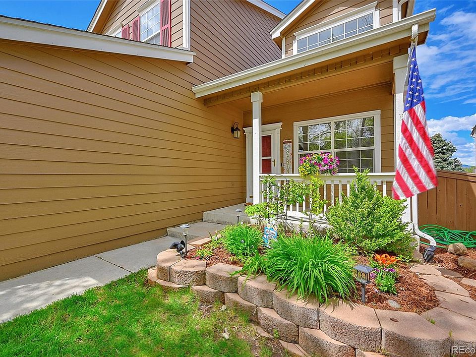 July 21st. OPEN Sun. 1:30 - 3:30....Seller is Motivated. $5,000 concession for rate buy down. School in the Back Yard??A Beautiful View Every Single Night?? This home Spotlights the Mountain Views from the Rare and Highly Desired "Sunset Deck"... It also happens to offer a Beautifully and fully updated home, 5 bed/3.5 baths... that will fit the whole family, Largest Model in the Neighborhood. This home was LOVED and maintained by ONE Owner, ONE Family. 5 large bedrooms above ground. The Basement is finished and can be used for multiple purposes. Entire home has been updated for its new owner. The Main floor offers rich Hardwoods, Granite kitchen counters, and warm and inviting spaces...the Main floor office is the conforming 5th bedroom. The Upper floor offers New carpet... and The Primary bedroom (yay! 2 walk in closets), and a Primary bath with Gorgeous cabinets and Granite counters. Also, up, you will find 3 other large bedrooms and a Full hall bath. All secondary bedrooms have incredible Mountain views where you can watch the sun set over the Rocky Mountains every evening... Each evening offers a new and more beautiful sunset than the night before. Basement is finished and useful in so many ways, offering a 3/4 bath and space to make your own. Crawl space is designed for Great storage. Neighbors are original owners as well... You can't get this view just anywhere. Home backs to highly desired, Eldorado Elem. and is an easy commute via trail to Ranch View and ThunderRidge...NO MORE CAR LINES! Close to shopping, restaurants, walking trails and SO... MUCH... MORE!!