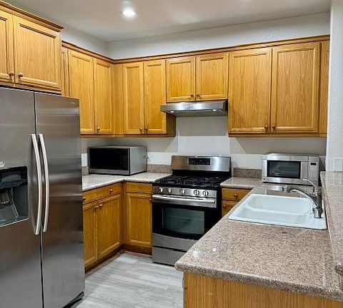 Newly renovated Two-Story Concord House, featuring 4 Bedroom/3 Bath House plus bonus Office/Den. This house is located in a lovely garden community neighborhood. This contemporary home is light and bright and ready to move in. * Gorgeous Kitchen featuring Gas Range and Stainless Appliances including countertop microwave * Flooring- combination New Luxury Vinyl plank flooring and Hard wood- No carpet * Central Heating and Air * Two Car automatic garage with overhead lighting and extra fridge * Large capacity washer/dryer in designated laundry room * Three Walk in Closets * Lovely Park like Common Area and Tot Lot * mile to 680 freeway * Decorative only fireplace * Small yard with mature fruit trees * Downstairs den/office may be used as a 5th bedroom but it does not have a closet but easy access to a full bathroom downstairs. Proudly managed by Astound Real Estate and Property Management, a professional property management company, CalBRE #01467064. This is a smoke free and pet free home, renters' insurance is required for the length of residency. Utilities paid by the resident. One year lease and $40 application fee.