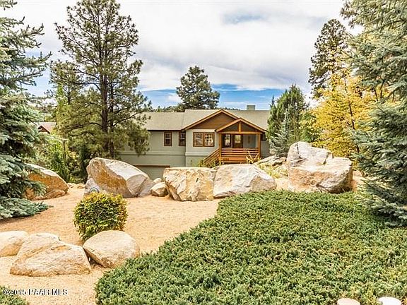 PRIVATE setting among beautiful BOULDERS and PINES yet very close to town! Custom area with all City of Prescott underground utilities with NO HOA. EASY CARE, full time or part time residence features 3 bedrooms, spacious great room,CHARMING island kitchen with eat-in area plus dining area in great room. The DEN/GAME ROOM/HOBBY ROOM down would also make an ideal IN-LAW SUITE with 3/4 bath, closet and convenience kitchen. LOG ACCENTS throughout provide a rustic elegance to this very special home nestled in a fabulous boulder setting! CLOSE TO TRAILS!