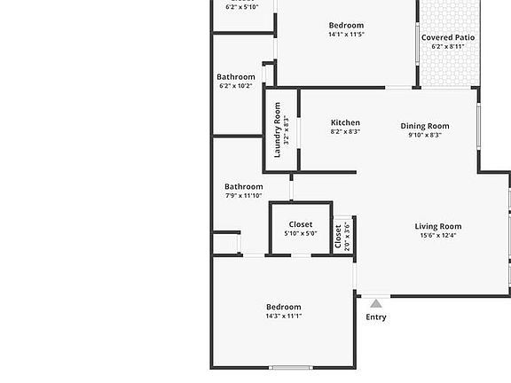Private patioSplit-bedroom layoutInterior laundry closetOpen and airy layout
