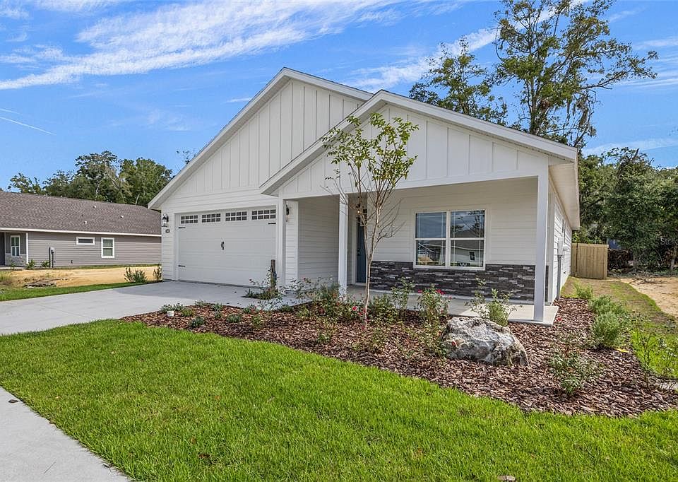 Move-in ready 2024 new construction in Grand Oaks by trusted local builder William Weseman Construction, situated on an extended, extra-deep lot with a fully fenced backyard. This is the popular “Ashley” floor plan, a well-designed one-story home with 4 bedrooms and 2 bathrooms offering an open, functional layout ideal for everyday living. This home offers the benefits of new construction without the wait, plus features typically added after closing. Included are washer, dryer, refrigerator, window blinds, and backyard fencing, providing immediate move-in convenience and saving buyers thousands compared to typical new homes. Interior finishes include wood-look porcelain tile and ceramic tile flooring throughout (no carpet, no lvp) and a stainless steel appliance package featuring a slide-in electric range, microwave, and dishwasher. The brand new home was briefly leased and is currently tenant-occupied; however, the lease will be terminated at closing, with buyer occupancy available beginning mid-February 2026. The property has been lightly lived in and remains in excellent condition. Photos shown are of the actual completed home prior to tenant occupancy and do not reflect tenant's personal property. Grand Oaks residents enjoy access to a community pool, covered pavilion, and playground, with convenient proximity to major Gainesville employers and campuses: approximately 2.4 miles to HCA North Florida Hospital and 3.2 miles to the University of Florida, UF Health Shands Hospital. Zoned for Chiles Elementary, Fort Clarke Middle, and Buchholz High School. A special opportunity to secure a newer home with meaningful extras and immediate availability, all in a highly convenient location.