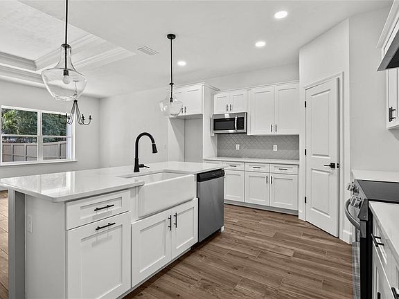 Slide-in electric rangeExtended extra-deep lotWell-designed one-story homeStainless steel appliance packageFully fenced backyard