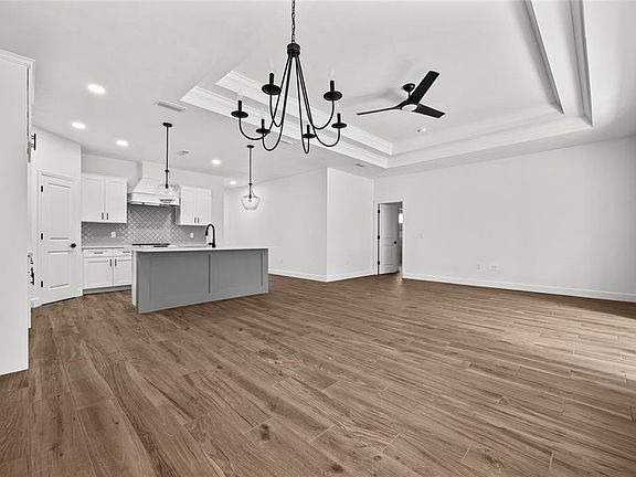 - Ceiling Fan(s), Crown Molding, Eating Space In Kitchen, Living Room/Dining Room Combo, Open Floorplan, Primary Bedroom Main Floor, Solid Wood Cabinets, Split Bedroom, Thermostat, Tray Ceiling(s), Walk-In Closet(s)