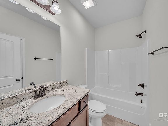 The CRESCENT II B in Majestic Manor community offers a 3 bedroom, 2 full bathroom, open design with a brick and hardie exterior. Upgrades include luxury vinyl plank flooring, upgraded granite countertops and more! Special Features: double vanity, garden tub, separate shower, and walk-in closet in the Primary suite, mud room with boot bench, kitchen island, walk-in pantry, covered front porch, covered rear patio, recessed can lighting, under-mount sinks, Venetian bronze plumbing fixtures, and an insulated garage door. Energy EfficientFeatures: Frigidaire stainless appliances, vinyl low E MI windows, radiant barrier roof decking, and more! Gold Fortified Certified home. This is an amazing home in a quiet little neighborhood on the south/west end of Foley with easy access to hardware stores, restaurants, shopping, and beaches.