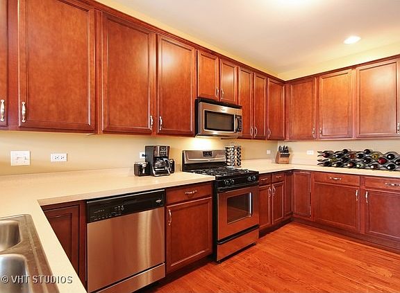 This Lovely 3-bedroom, 2.5-bath end-unit townhome has so much to offer! The first floor boasts gleaming hardwood floors and nine-foot ceilings throughout. In the kitchen you will find upgraded 42" cabinets with a closet pantry and stainless steel appliances. The kitchen and dining room are open to the living room for a bright, airy feel. Upstairs, the master suite features a walk-in closet and the private bath has twin sinks, a deep soaking tub and separate shower. The second floor has not only two more bedrooms but also includes a useful loft space and laundry room. The full basement provides plenty of room for storage or to expand your living space. Great location minutes from Interstate 55 or a few miles from the Pace express bus station to the Loop make this is a commuter''s dream. Why buy new when you can move right in to this like new home? Make it yours today!