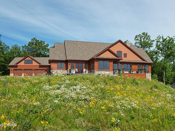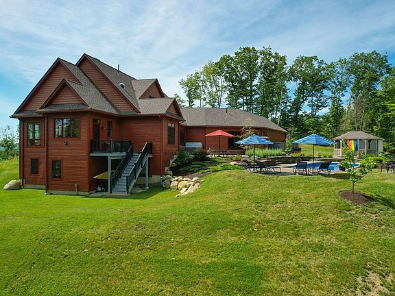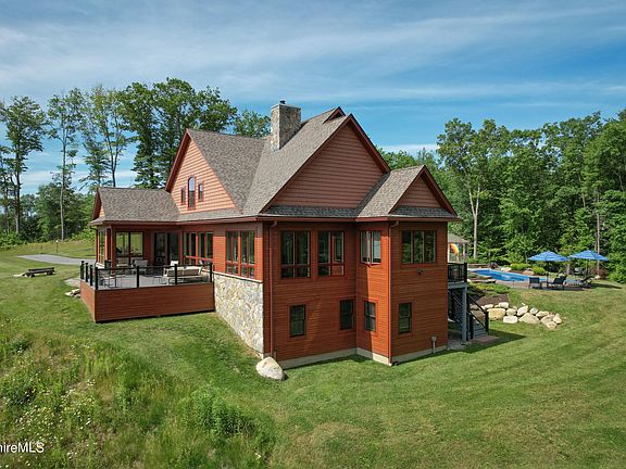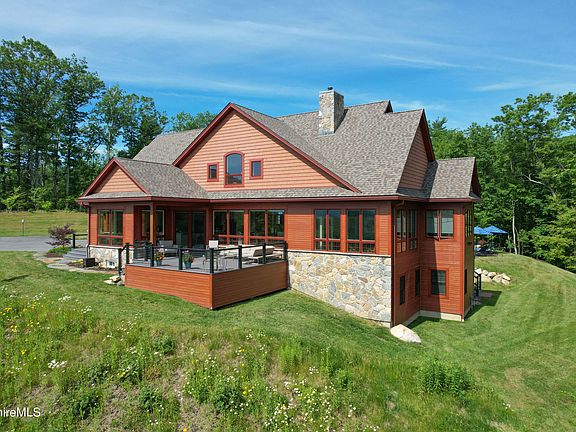 An outstanding rarity in Northampton - an exquisitely designed and built Contemporary hilltop residence with sweeping southeasterly views. With over 6000 sq. ft, 6+ acres of land with trails abutting 17 acres of conserved land, this property has it all - from a luxurious 1st floor primary bedroom suite with 2 walk in closets, jacuzzi tub and private deck overlooking the vista, to the gourmet kitchen that opens to the living room & masonry fireplace. Other features include a 2nd en-suite bedroom on the main level, a sun room and private office plus a loft used as an artist's studio. Downstairs there are 2 bedrooms with a bathroom suite, media room, game room, indoor Endless lap pool with state of the art ventilation system. The 3-car garage has an exercise room above. Outside you'll find a salt water pool, hot tub, fire pits, gazebo and 3 sheds. Built to high energy standards, the property also comes with a freestanding array of solar panels. 10 minute drive to downtown Northampton.