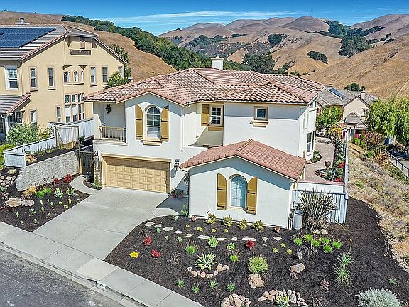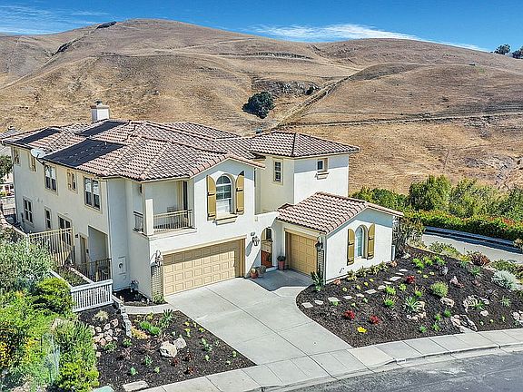 Built in 2000 by Warmington, this 4082 sf, 5 Bedroom, 4 ½ bath,(1 Bedroom 1 Bath on 1st level) original owner home has been lovingly maintained & upgraded. The exterior has been repainted in 2021, the landscaping has been replaced w/low water irrigation & plantings. Gorgeous Views of Tri Valley!! Private Backyard w/NO REAR neighbors,The backyard hardscape is covered w/pavers features built in BBQ /serving area, an in-ground pool w/Solar & garden shed, Upgraded Electrical panel, 220V EV charging station in garage. Inside the home features recently Painted Interior, new wood floors & carpet. A Douglah designed custom kitchen was installed in 2019, incul. Wolf and Sub-Zero appliances + custom range hood. The family room has custom built-in entertainment center & shelving, and custom stair banner leads to second floor. 2nd floor features recently upgraded master bath, complete w/Badeloft stone soaking tub, marble floors & countertops. 3 Car garage features overhead storage & Water Softener