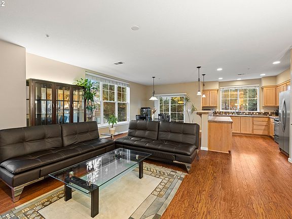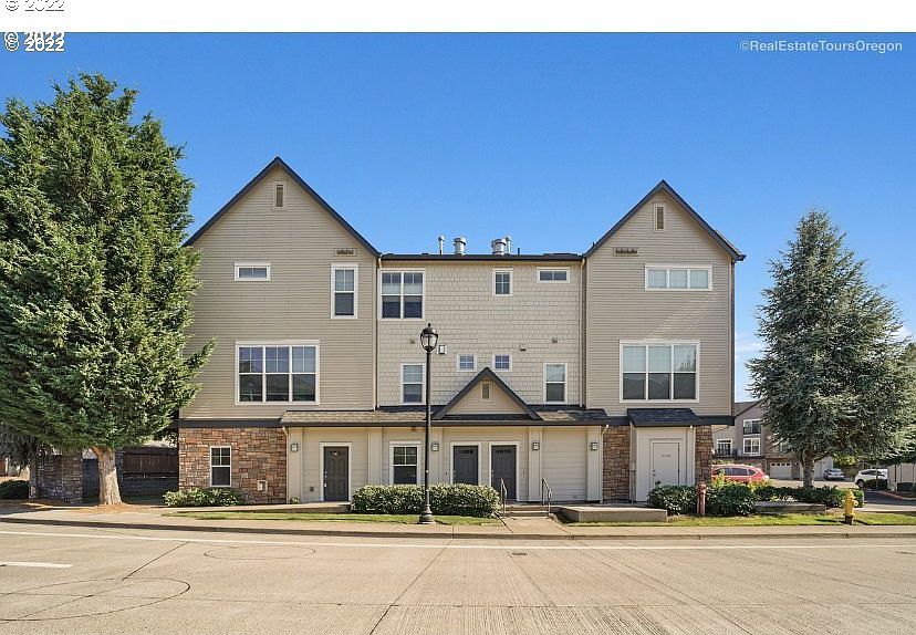 Beautiful, spacious townhome-style, upper unit condo filled with natural light. Open Great Room w/ laminate flooring, gas fireplace, large dining area & an eating bar. The Kitchen has island and SS appliances. New water heater, gas range, microwave & garbage disposal. Bedrooms have ensuite baths. BBQ in community area, lots of guest parking & Children's Park. Refrigerator, washer & dryer can stay. Great city-like access to many stores, restaurants, entertainment & MAX line. Close to Intel & Nike