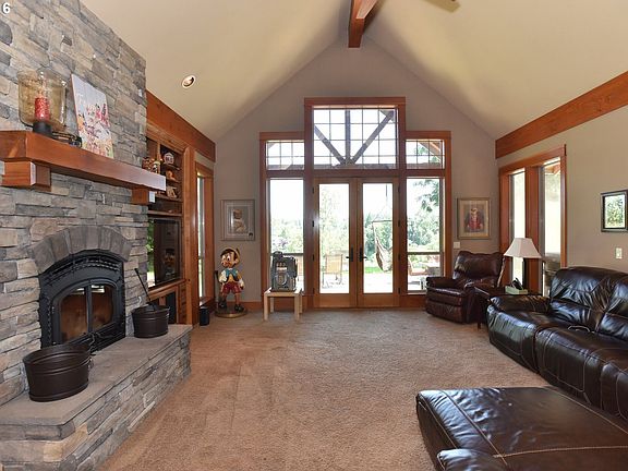 Gorgeous craftsman home w/rustic character. 3 beds, den on main & bonus. Master suite on main w/soak tub,steam shower. Impressive great room w/floor to ceil f/p, rustic beams. Large chef's kitchen w/island, built-in buffet, .All beds have own bath. Loft, add'l room. Mud room, storage galore, Approved for ADU/shop primed w/220, heat pump, spklrs. 1 acre lot, cement & steel dock, circ drive & room for toys/RV.