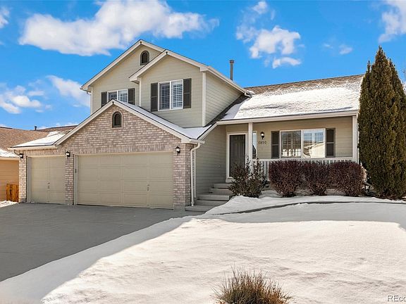 Bright, sunny, and spacious, this move-in-ready gem in Littleton’s Sunrise Creek neighborhood is perfectly situated on a corner lot backing to open space, ensuring privacy with no direct neighbors behind. Enjoy stunning foothill views and easy access to walking trails, parks, and a peaceful, wonderful community. A charming covered front porch sets a warm welcome. Inside, the home offers a seamless blend of formal and informal living spaces with high ceilings and an airy, open floor plan. White plantation shutters adorn every window, adding a touch of elegance. The incredible kitchen is a dream for home chefs, featuring white cabinetry, sleek dark granite countertops, stainless steel appliances, a double oven, gas range, a center eat-in island, and a pantry for extra storage. The cozy family room boasts a fireplace, perfect for winter nights, and a bay window that floods the space with natural light. The dining room opens to the backyard, where a large brick patio provides the perfect setting for outdoor dining and entertaining with breathtaking mountain views. Upstairs, three generously sized bedrooms await, along with a niche at the top of the stairs ideal for a desk or reading nook. The finished basement expands the living space with an additional family room, a bonus room that would make a great 4th bedroom (non-conforming), office or yoga room, and a bathroom. Recent updates include a remodeled half bath (2023), exterior paint (2023), basement flooring and paint (2024), and carpet (2022). Sunrise Creek Park is just across the street, offering abundant trails and nature to explore. With quick access to C-470 and Hwy 285, commuting to the mountains or downtown is a breeze. Welcome home!