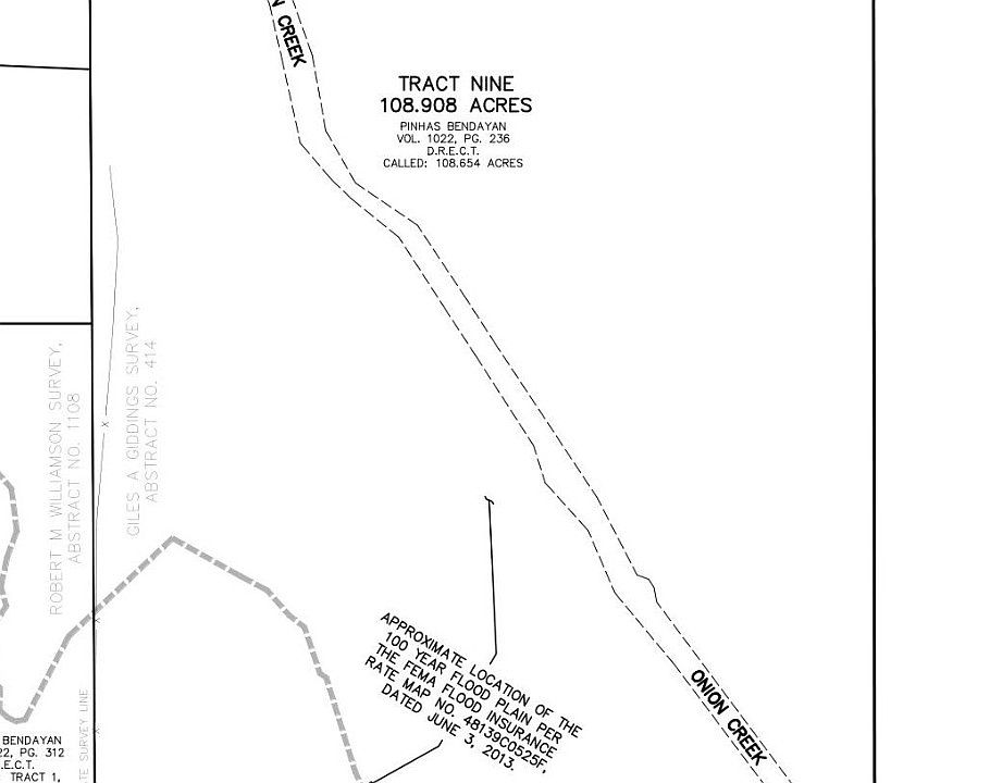 Over 100 acres with a nice home site near the road, a nice view, bisected by Onion Creek. Adjacent to NTREIS MLS 21121756 (31.043 Acres) on FM 985.