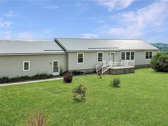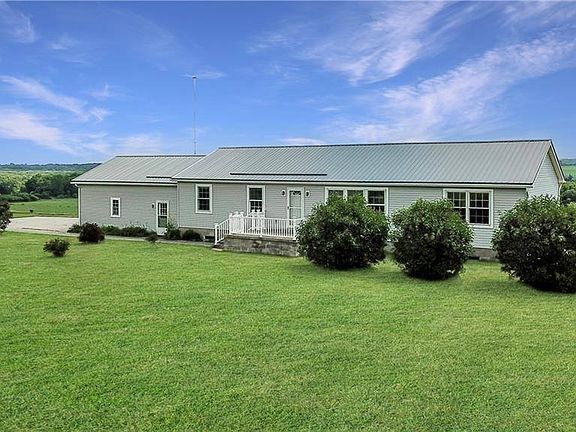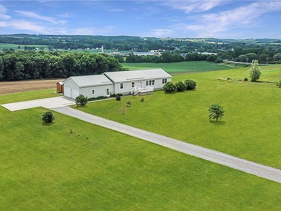 Talk about sitting on top of the world! Check out the BEAUTIFUL views from this sprawling ranch home on approx. 2.5 acres! 3 bedrooms and 2 full baths on main floor. 2 additional basement bedrooms roughed in along with another full bath, 9 ft ceilings, all complete with egress. Walk right out to your scenic back yard. Just a start of additional living space on a lower level! ~ Stamped concrete on front open porch and back patio ~ 1st floor has a super open floor plan with modern kitchen, dining & living areas, laundry room, all appliances stay! Spacious master bedroom ensuite with walk in closet & soaking tub. 2.5 car attached garage! Convenient to the NYS Thruway, Rt 490, Geneseo, Batavia & Warsaw. Very nicely maintained throughout! ~ Home and approximately 2.5 acres to be sub-divided off of 71.7 acres, new taxes and assessment TBD. Published taxes & assessment based on list price.