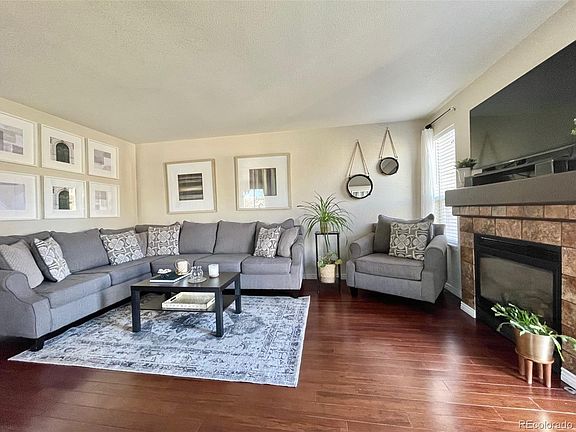 Don't miss your chance on this gorgeous townhouse in Commerce City's Eagle Creek neighborhood. This was the model unit when the complex was built, so it has it all! The corner lot offers tons of room to enjoy the outdoors, complete with sprinkler systems in the front and back. The backyard has a great stamped concrete patio and a large 10'x12' storage shed. Inside you'll find the open concept living room/dining room area flows nicely into the kitchen, which has stainless steel appliances. The main level has beautiful hardwood floors throughout, updated 1/2 bath and laundry area. Upstairs enjoy two HUGE bedrooms, each with it's own private bathroom. The larger bedroom also boasts a walk-in closet plus room for a seating area. Then go downstairs to find a large fully finished basement where the family can enjoy movie nights with the included projector system and 130" movie screen! There's also a wet bar complete with granite counters and lots of cabinets. The basement also has a 3rd bedroom complete with an egress window and a remodeled 3/4 bath with designer tile. You'll love the A/C for the upcoming summer months and a gas fireplace in the living room for Colorado's chilly winters.